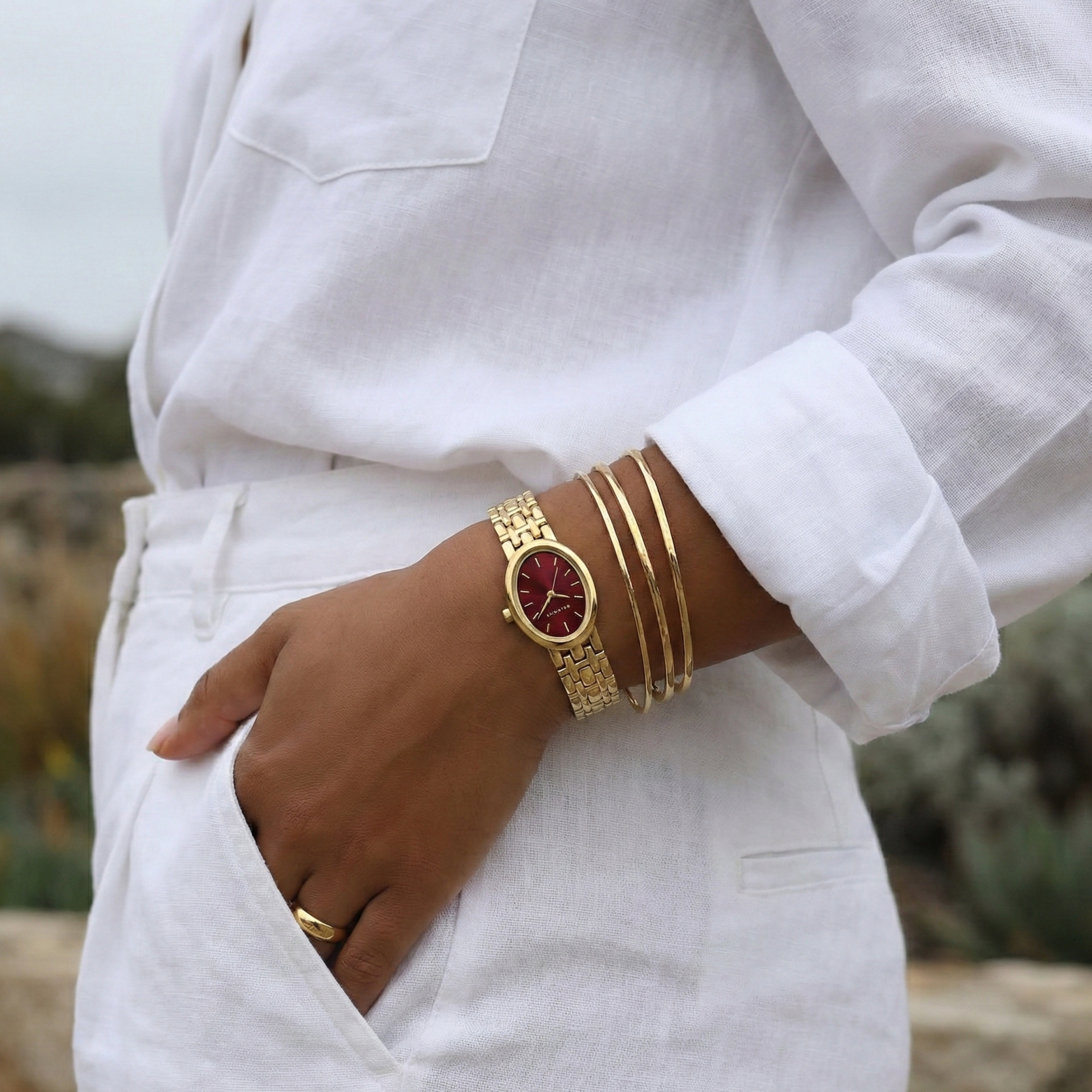 Our watches blend contemporary styling with timeless craftsmanship, delivering pieces that feel both current and enduring. Designed to complement her wardrobe effortlessly, from everyday wear to special occasions.